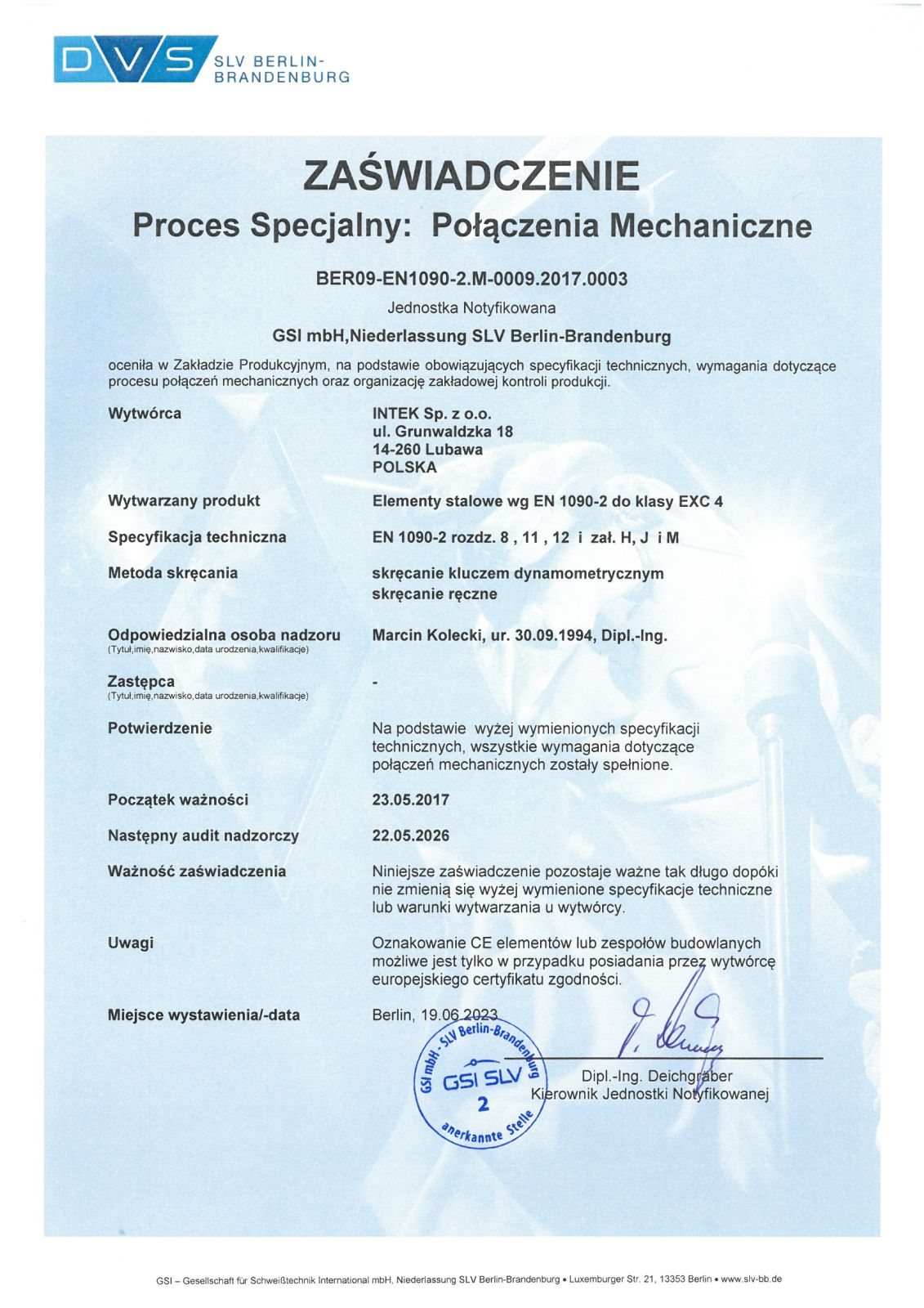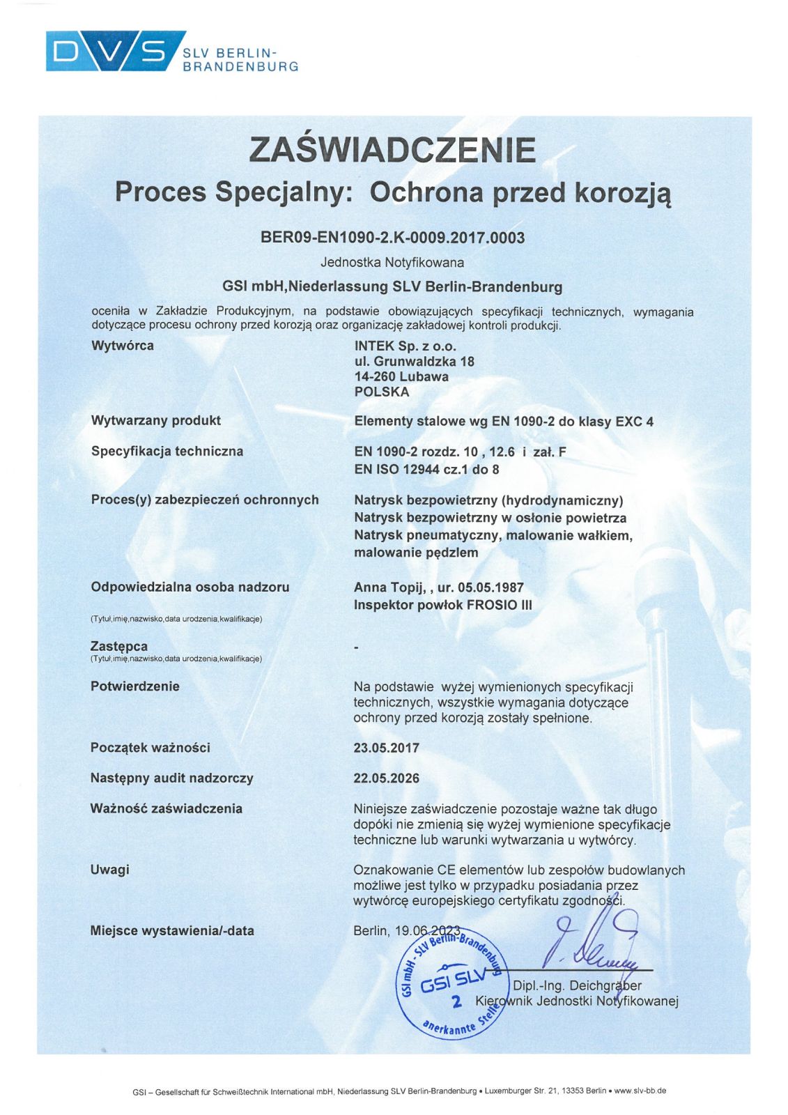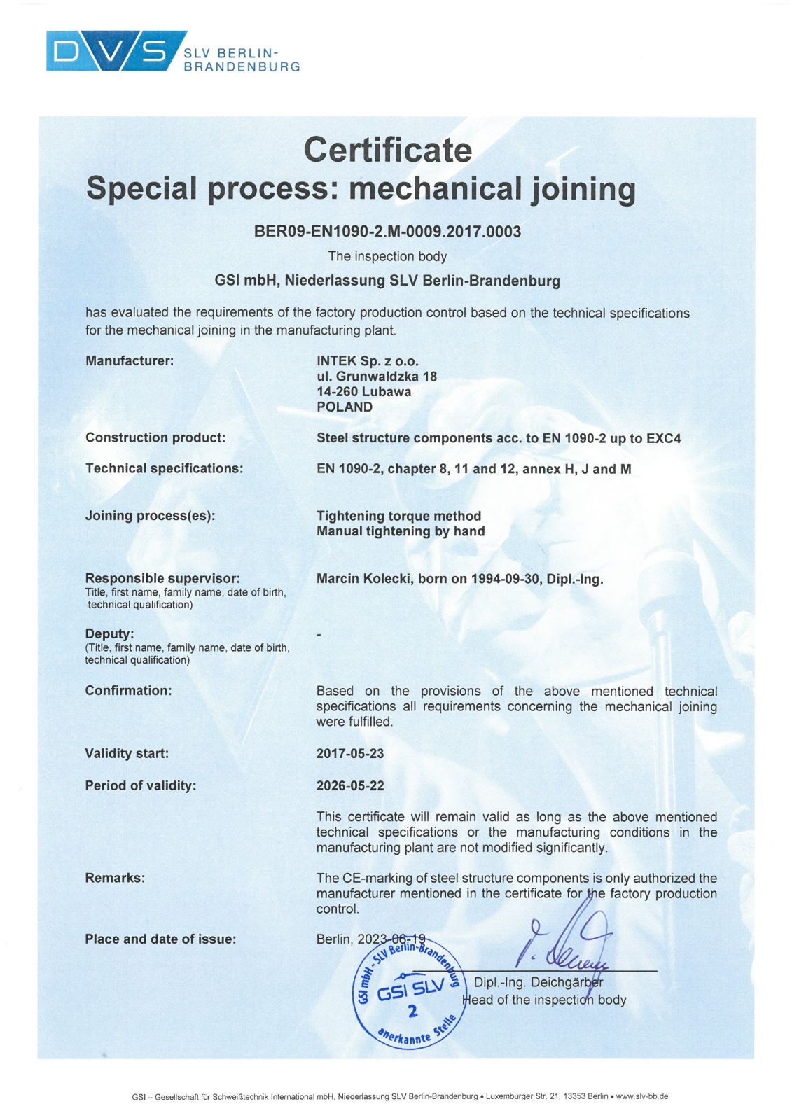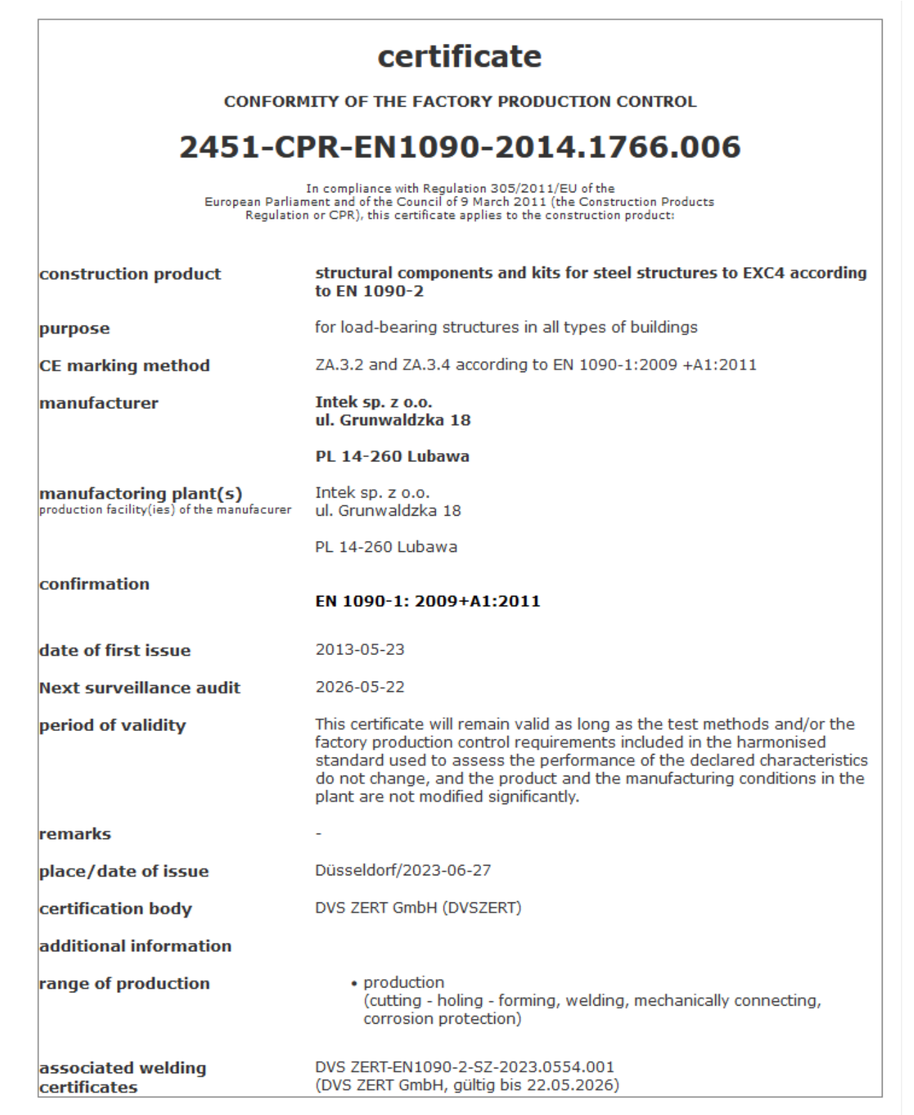 - DNV certificate – approval of the plant for the production of structures in accordance with the DNV-CP-0352 program