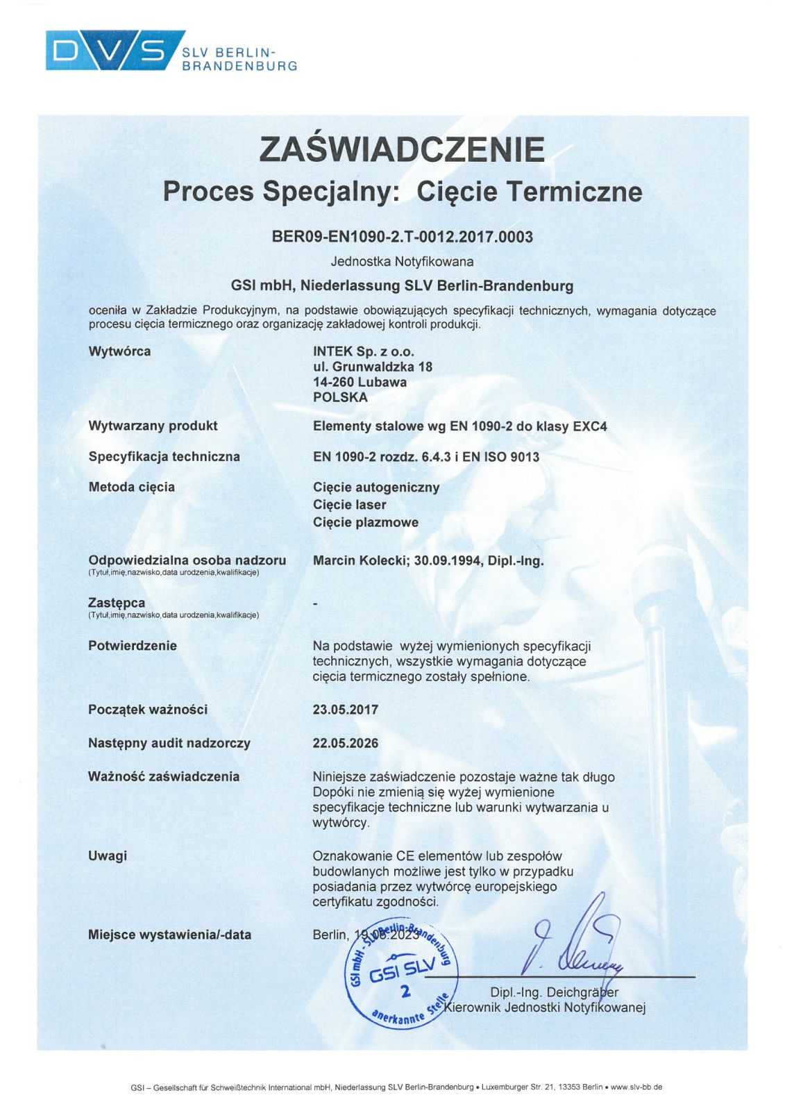- Certification of welding processes in accordance with EN 15085-2 CL1 in activities D, P, S, M - railway industry